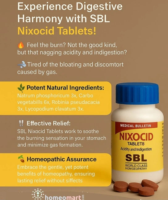 SBL নিক্সোসিড ট্যাবলেট - অ্যাসিডিটি, গ্যাস এবং বদহজমের জন্য হোমিওপ্যাথিক উপশম