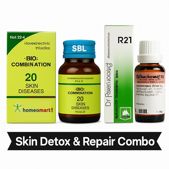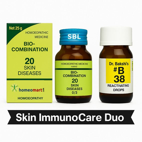 Discover two powerful homeopathic combinations designed to address skin disorders from the inside out. Whether your skin issues stem from weak immunity or deep-rooted constitutional imbalances, these curated pairings offer targeted relief, faster healing, and long-term skin resilience. Featuring Bio-Combination 20 with either Dr. Bakshi’s B38 Reactivating Drops or Dr. Reckeweg’s R21 Reconstituant Drops, each combo is tailored to meet distinct therapeutic needs.