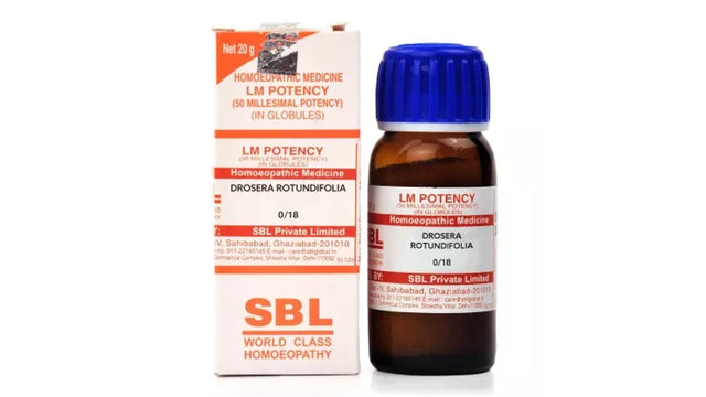 ড্রোসেরা হর্সনেস এবং ক্রমাগত জ্বালা, কাশি এবং ক্রমাগত জ্বালা এবং স্বরযন্ত্রের স্ক্র্যাপিংয়ের জন্য নির্দেশিত হয়।