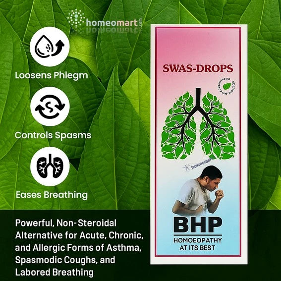 বিএইচপি সোয়াস ড্রপস (BHP Swas Drops) তীব্র, দীর্ঘস্থায়ী এবং ব্রঙ্কিয়াল প্রকার সহ হাঁপানির মতো গুরুতর শ্বাসযন্ত্রের অবস্থা পরিচালনার জন্য তৈরি করা হয়। আমাদের পণ্যগুলি স্প্যাসমোডিক কাশি সহ শ্বাসযন্ত্রের বিভিন্ন অ্যালার্জির অবস্থার চিকিত্সায় তাদের কার্যকারিতার জন্য উদযাপন করা হয়।