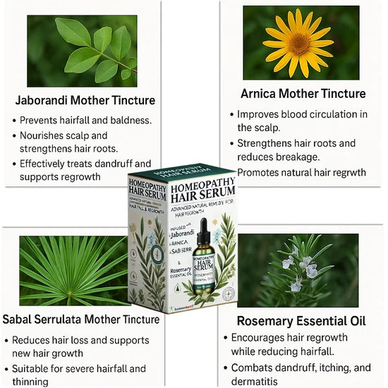 হোমিওপ্যাথি হেয়ার সিরাম, বিশেষজ্ঞদের সুপারিশকৃত একটি উন্নত প্রাকৃতিক প্রতিকার যা শুষ্কতা ও চুল পড়া, টাকের দাগ দূর করতে এবং চুলের পুনরুত্থানকে সমর্থন করার জন্য তৈরি।