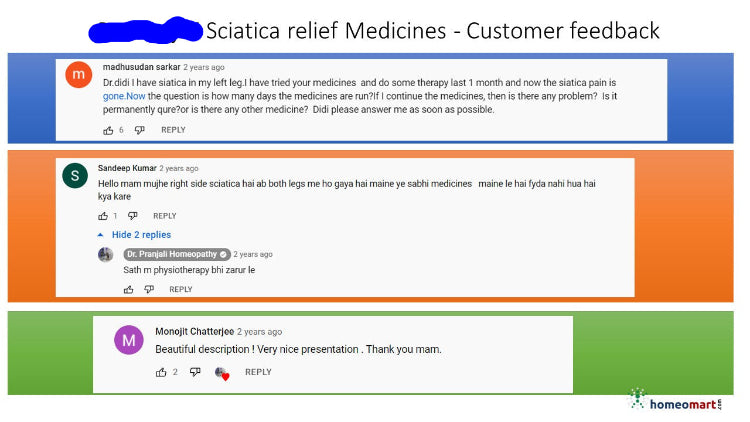 এই হোমিওপ্যাথি কিটটি একজন সুপরিচিত মহিলা হোমিওপ্যাথি হোমিওপ্যাথি বিশেষজ্ঞ দ্বারা অনুমোদিত। সায়াটিকা ব্যথা উপশম ঔষধ | সায়াটিকার জন্য হোমিওপ্যাথিক ঔষধ শিরোনামের তার ইউটিউব ভিডিওতে, তিনি সায়াটিকা উপশমের জন্য তার কার্যকর, প্রাকৃতিক সমাধানগুলি ভাগ করে নিয়েছেন।