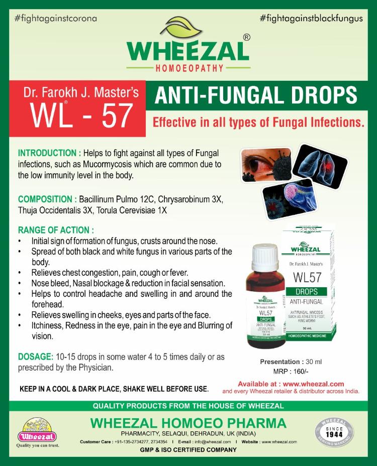 Wheezal WL57 অ্যান্টি ফাঙ্গাল ড্রপস অ্যাথলিটস ফুট, দাদ এবং মিউকোরমাইকোসিসের মতো ছত্রাকের সংক্রমণের চিকিৎসার জন্য একটি হোমিওপ্যাথিক এবং প্রাকৃতিক অ্যান্টিফাঙ্গাল ওষুধ মৌখিক প্রতিকার প্রদান করে, যা দুর্বল রোগ প্রতিরোধ ক্ষমতার কারণে সাধারণ। ৩৪ বছরেরও বেশি অভিজ্ঞতার অধিকারী একজন নেতৃস্থানীয় অনুশীলনকারী ডাঃ ফারুক জে. মাস্টার দ্বারা তৈরি এই ফর্মুলেশনটি লালভাব, জ্বালা এবং ফোলাভাব থেকে মুক্তি দেওয়ার জন্য ডিজাইন করা হয়েছে, একই সাথে ত্বকের কালো ভাব এবং সংক্রমণের বিস্তার রোধ করে।