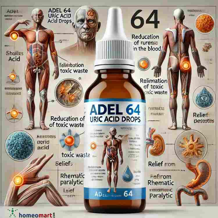 एडेल 64 मुंडीपुर यूरिक एसिड ड्रॉप्स: यूरिक एसिड नियंत्रण के लिए होम्योपैथिक गाउट राहत दवा