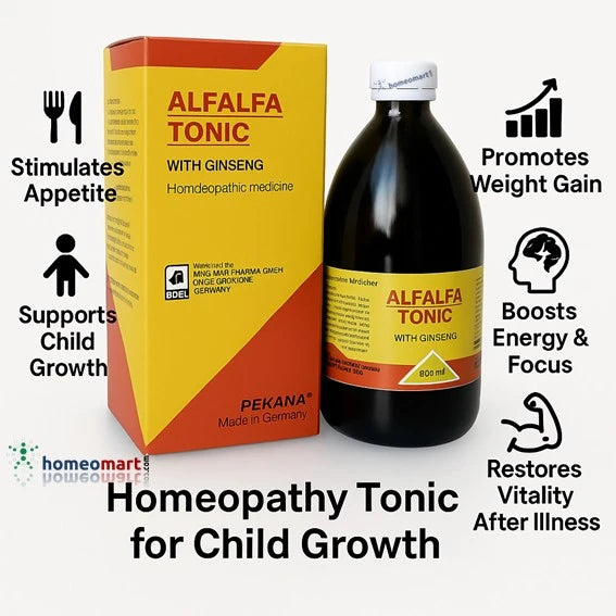 जिनसेंग युक्त अल्फाल्फा टॉनिक बच्चों के विकास के लिए एक उपयोगी होम्योपैथी टॉनिक है, जो प्राकृतिक और सुरक्षित रूप से स्वस्थ विकास में सहायक है।