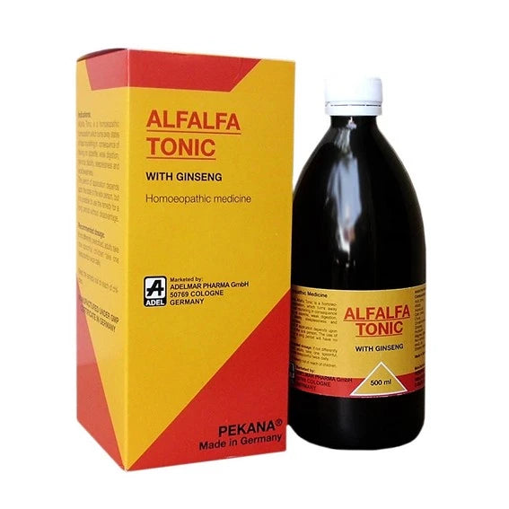 जिनसेंग युक्त अल्फाल्फा टॉनिक एक शक्तिशाली वृद्धि प्रवर्तक है, जो सिद्ध होम्योपैथिक अवयवों से निर्मित है, जो चयापचय को बढ़ावा देता है, पाचन में सुधार करता है, तथा कम वजन वाले या कमजोर बच्चों में भूख को उत्तेजित करता है।