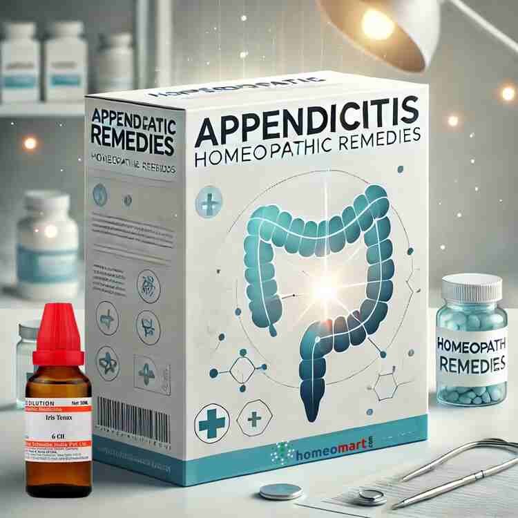 बेस्टसेलिंग पुस्तक होम्योपैथी इजी प्रिस्क्राइबर के लेखक डॉ. के.एस. गोपी ने रोगी के लक्षणों के आधार पर अपेंडिसाइटिस के लिए विशिष्ट उपचार की पहचान की है: