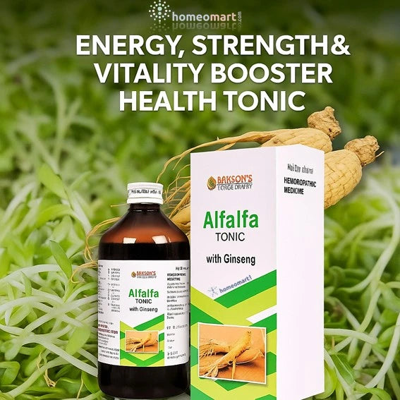 बैक्सन का अल्फाल्फा टॉनिक विद जिनसेंग एक अनूठा होम्योपैथिक फॉर्मूलेशन है जो अल्फाल्फा की पोषण शक्ति को जिनसेंग और अन्य सिद्ध होम्योपैथिक उपचारों के चिकित्सीय लाभों के साथ मिश्रित करता है। यह टॉनिक थकान से लड़ने, पाचन को बढ़ाने, तंत्रिका तंत्र को मजबूत करने और समग्र स्वास्थ्य को बढ़ावा देने के लिए बनाया गया है। यह उन व्यक्तियों के लिए विशेष रूप से फायदेमंद है जो बीमारी या अपर्याप्त आराम के कारण शारीरिक थकावट, भावनात्मक तनाव या कमजोरी का अनुभव कर रहे हैं।