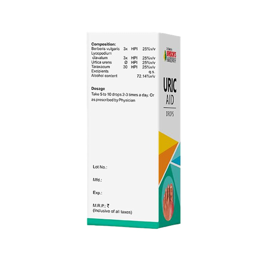 गाउट की परेशानी को कम करता है: बैक्सन यूरिक एसिड ड्रॉप्स गाउट के हमलों से जुड़े दर्द, सूजन और कोमलता को प्रबंधित करने में सहायता कर सकता है, और इन सामान्य लक्षणों से राहत प्रदान करता है।
