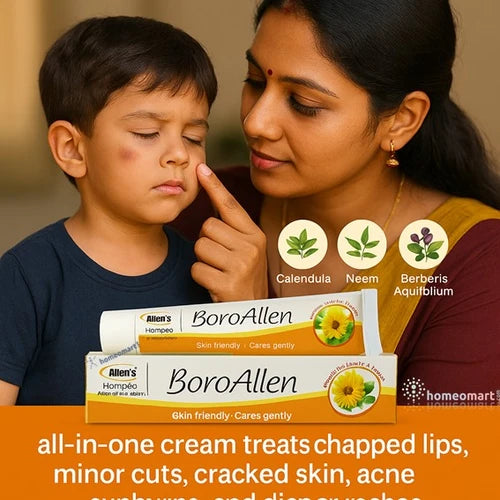बोरोएलन एंटीसेप्टिक क्रीम एक सौम्य लेकिन शक्तिशाली होम्योपैथिक फ़ॉर्मूला है जिसे विशेष रूप से सभी मौसमों में त्वचा की सुरक्षा प्रदान करने के लिए तैयार किया गया है। चाहे आप फटे हुए होंठ, छोटे-मोटे कट, फटी हुई त्वचा, चकत्ते, मुंहासे या सनबर्न से जूझ रहे हों, यह क्रीम तेज़ी से राहत देती है, उपचार को बढ़ावा देती है और त्वचा की जीवंतता को प्राकृतिक रूप से बहाल करती है। बर्बेरिस एक्विफ़ोलियम, कैलेंडुला, हाइड्रोकोटाइल और नीम (एज़ादिराच्टा इंडिका) जैसे समय-परीक्षण किए गए होम्योपैथिक तत्वों से समृद्ध, यह क्षतिग्रस्त त्वचा को आराम, पोषण और मरम्मत करती है।