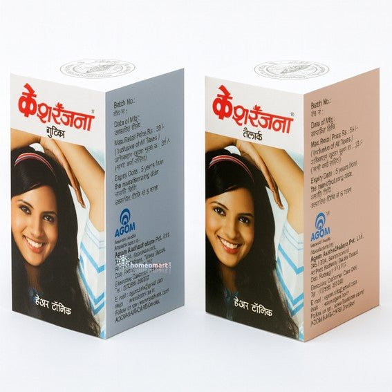 - अगोम केशरंजना गोलियाँ: बालों का झड़ना नियंत्रित करती हैं, समय से पहले सफ़ेद होने से रोकती हैं, और रूखे बालों व दोमुँहे बालों का इलाज करती हैं। इसमें सेंटेला एशियाटिका, एक्लिप्टा अल्बा, हिबिस्कस रोज़ासिनेंसिस, एम्ब्लिका ऑफ़िसिनैलिस और फ़िस्कस बेंगालेंसिस जैसे शक्तिशाली होम्योपैथिक तत्व शामिल हैं।
