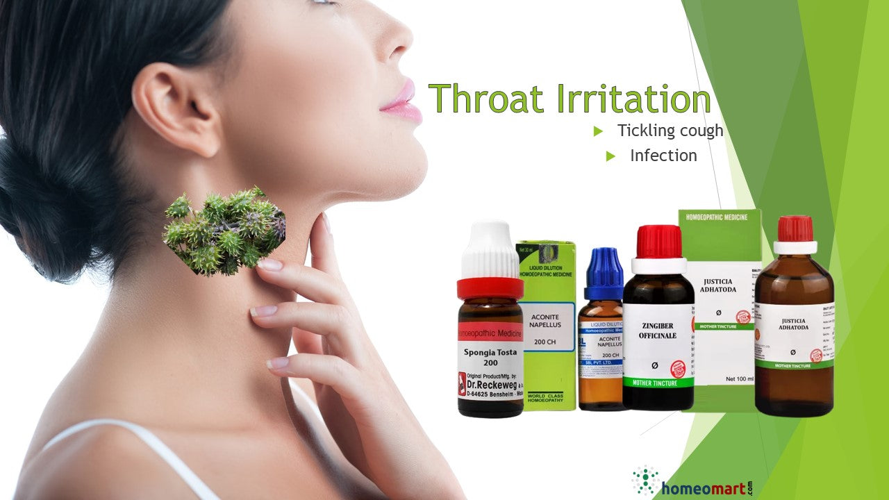 होम्योपैथिक चिकित्सक आमतौर पर दर्द को कम करने, सूजन को कम करने और अत्यधिक कफ को साफ करने के लिए चार प्रमुख सामान्य दवाओं की पहचान करते हैं, जो कमजोर पड़ने और मदर टिंचर के रूप में उपलब्ध हैं। यह दृष्टिकोण गले में खराश और खुजली से काफी राहत देता है, जिसके साथ खांसी भी हो सकती है।