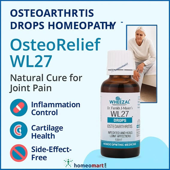 क्या आप ऑस्टियोआर्थराइटिस से प्राकृतिक और दुष्प्रभाव-मुक्त राहत चाहते हैं? व्हीज़ल WL27 ऑस्टियोआर्थराइटिस ड्रॉप्स एक विश्वसनीय होम्योपैथिक फ़ॉर्मूला है जिसे प्रसिद्ध होम्योपैथ डॉ. फ़ारुख जे. मास्टर द्वारा विकसित किया गया है, जो जोड़ों की सूजन को नियंत्रित करने, कार्टिलेज के स्वास्थ्य को बेहतर बनाने और जोड़ों के लचीलेपन में सुधार के लिए डिज़ाइन किया गया है।