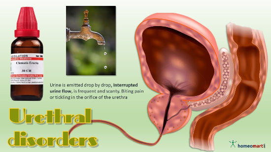 मूत्रमार्ग की स्थिति जैसे कि सिकुड़न और मूत्रमार्गशोथ के कारण दर्द, पेशाब करने में कठिनाई, रक्तस्राव और डिस्चार्ज होता है। प्रसिद्ध होम्योपैथिक चिकित्सक और होम्योपैथी इजी प्रिस्क्राइबर के लेखक डॉ. केएस गोपी ने इन स्थितियों के लिए प्रमुख होम्योपैथिक उपचारों की पहचान की है।