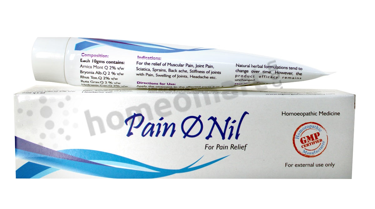 पेन ओ निल एक होम्योपैथिक मरहम है जिसे विभिन्न प्रकार के दर्द से राहत प्रदान करने के लिए डिज़ाइन किया गया है, जिसमें मांसपेशियों में दर्द, जोड़ों का दर्द, साइटिका, मोच और पीठ दर्द शामिल हैं। यह दर्द के साथ जोड़ों की अकड़न, जोड़ों की सूजन और सिरदर्द के लिए भी प्रभावी है। यह दवा दर्द को कम करने और उपचार को बढ़ावा देने के लिए कई होम्योपैथिक अवयवों के लाभों को जोड़ती है।