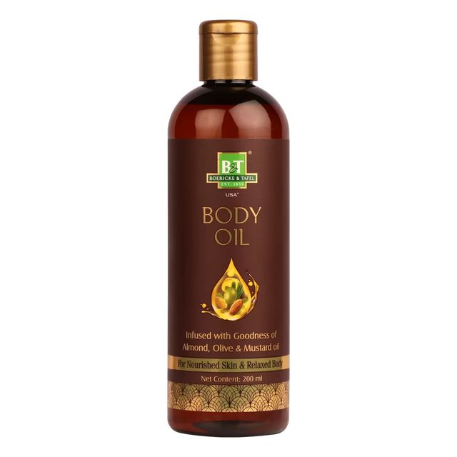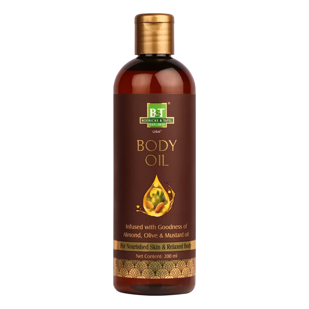 गहरी हाइड्रेशन और आराम का अनुभव करें! B&T बॉडी ऑयल बादाम, जैतून और सरसों के तेल के साथ मालिश को बढ़ाता है, मांसपेशियों को आराम देता है और संपूर्ण स्वास्थ्य के लिए त्वचा को पोषण देता है।