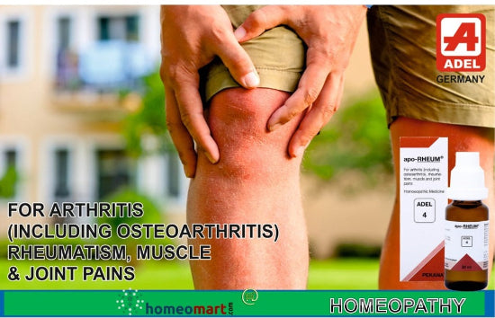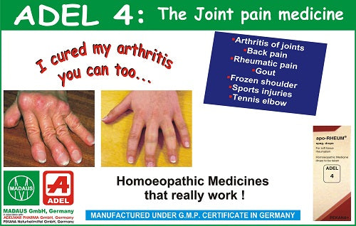 Relieve arthritis, rheumatism, and joint pain naturally with ADEL 4 (apo-RHEUM) drops. This homeopathic formula targets inflammation and discomfort, offering long-lasting relief for sore muscles, joints, and stiffness. Safe and effective for daily use