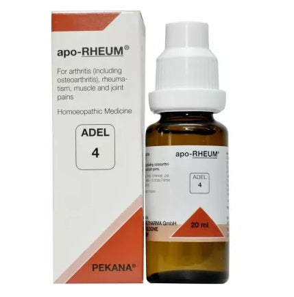 Effective for arthritis, gout, low back pain, cervical spondylosis, sprains, sports injuries, and tennis elbow. Rheumatism refers to a variety of conditions affecting ligaments, tendons, muscles, and bones. ADEL 4 (apo-RHEUM) drops provide relief from painful, inflammatory sensations caused by soft tissue rheumatism.