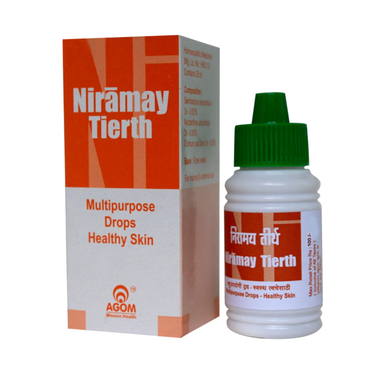 Agom Niramaya Tirth Herbal Multipurpose Drops for Healthy Skin with Bhilwa, Parijaat, Tulsi - 25ml is backordered and will ship as soon as it is back in stock.