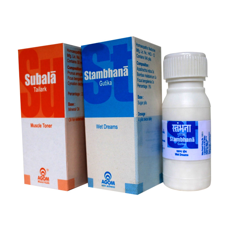 Agom Stambhana Gutika & Subala Tailark Combo for Muscle Toning & Wet Dream Treatment
