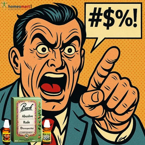 This Bach Flower Mix is indicated for abusive (extremely offensive and insulting), rude, offensive, disrespectful, contemptuous people.