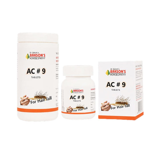 Experience the confidence of luscious locks with Bakson AC#9 Tablets, a homoeopathic solution designed to combat hair loss and revitalize your scalp. This unique blend of natural ingredients nourishes hair follicles, promoting growth and combating dryness.