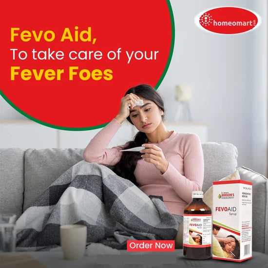 Ease fever and flu discomfort naturally with Bakson Fevo Aid — a safe, fast-acting homeopathic syrup for chills, body ache, cough, and fatigue.