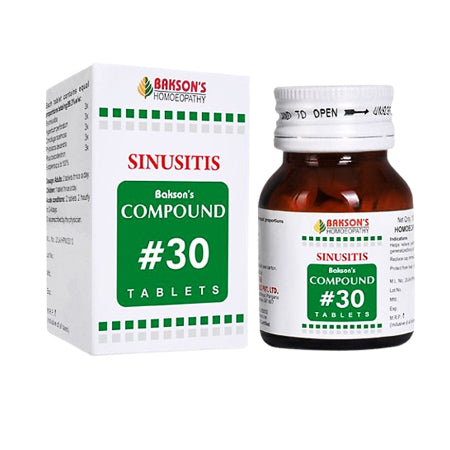 Bakson's Compound #30 Tablets offer targeted homeopathic relief for sinusitis symptoms, including sneezing, nasal congestion, thick discharge, loss of smell, and persistent sinus headaches.