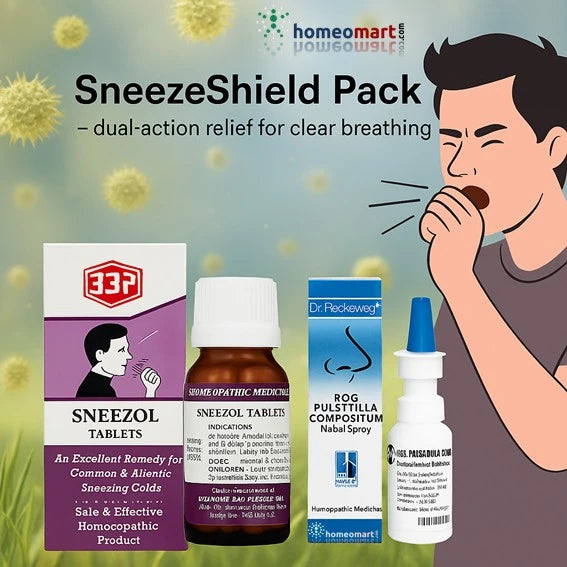 Tip: For faster nasal relief alongside Sneezol’s systemic action, add Reckeweg R96 Nasal Spray—a targeted homeopathic solution for stuffy nose and allergic rhinitis. Sneezol tackles internal allergy triggers while R96 clears nasal passages instantly for easier breathing and better sleep. Together, they offer a dual-action homeopathic solution for stubborn sneezing, congestion, and allergic rhinitis.