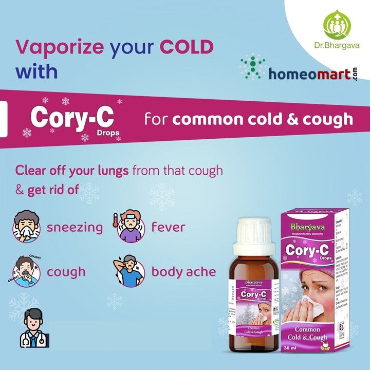 Bhargava Cory C Drops is a clinically formulated anti-catarrhal homeopathic remedy designed to combat common cold, cough, sneezing, and flu-like symptoms, especially those triggered by sudden weather changes. Whether it’s a runny nose, body ache, or seasonal fever, Cory C Drops offers gentle yet effective relief without side effects.