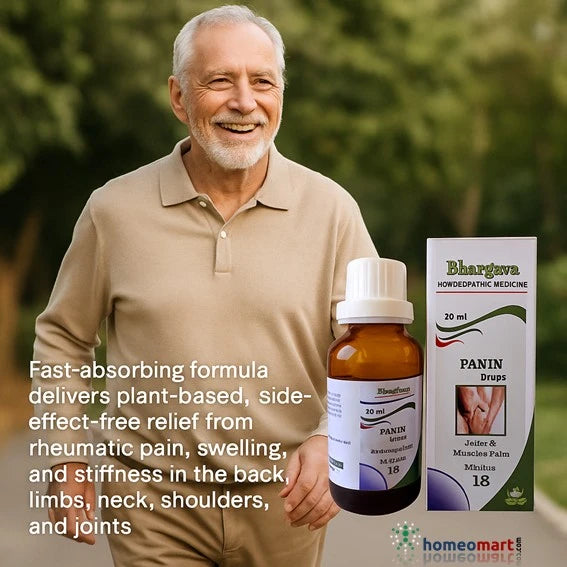 Say goodbye to persistent muscle and joint pain with Bhargava No. 18 Panin Drops, a powerful homeopathic formulation specially designed to relieve rheumatic pain, swelling, and stiffness in the back, limbs, neck, shoulders, and joints. Ideal for those suffering from arthritis, sprains, sciatica, and sports injuries, this liquid oral solution targets discomfort at its root.