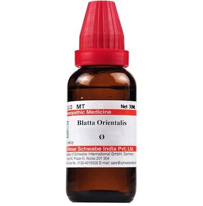 - Blata Orientalis Q is an excellent medicine for asthma. Blatta in acute cases acts better in lower potencies- mother tinctutre to 3x. But in chronic cases it acts better in higher potencies 200 to 1000. It is more suitable to fat persons. Patient get worse in the rainy weather. Cough with much pus like mucus. When improvement is noted , discontinue the medicine.