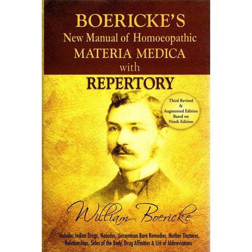 Amongst all the valuable literature available for homoeopathy, it would be unjustified to not mention, william Boericke's efforts. One of his most valued contribution is in the form of 'Homeopathic Materia Madica and Repertory'. This book provides authentic information on homoeopathic drugs. The unique feature is the systematic representation of the drugs under various system headings like mind, head, female, Respiration, sleep, extremities, etc. Every drug is followed by a brief about it's relationship with other remedies. This literature has an added advantage, as it is a compendium of a clinical repertory which is very useful for bed-side prescribing. The repertory is handy and easy to use and since it is based on the most widely used book of reference for Materia Medica and Clinical Repertory and would find place on every homoeopath's desk.