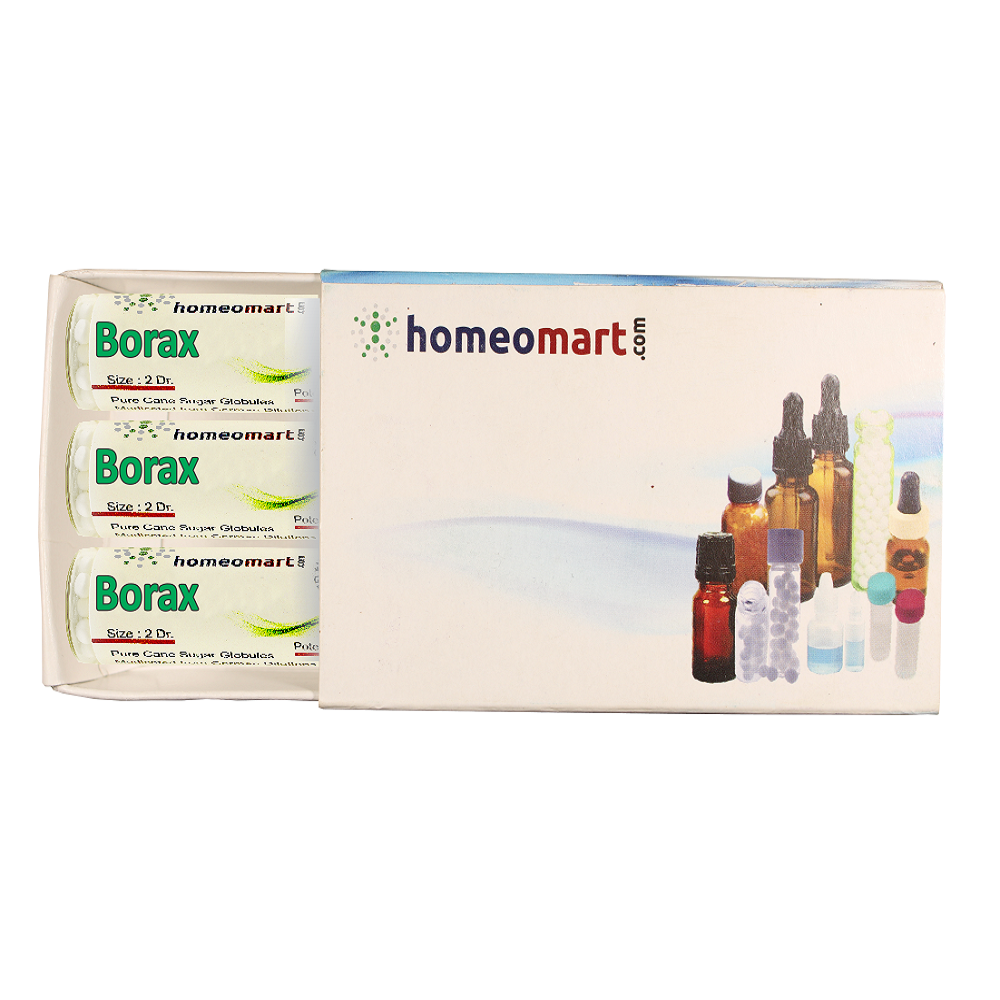 Borax, also known as Sodium Borate, is a trusted homeopathic remedy primarily used for gastrointestinal issues, mouth ulcers, and pediatric fungal infections. It is especially helpful for oral thrush and urinary tract discomfort in children.