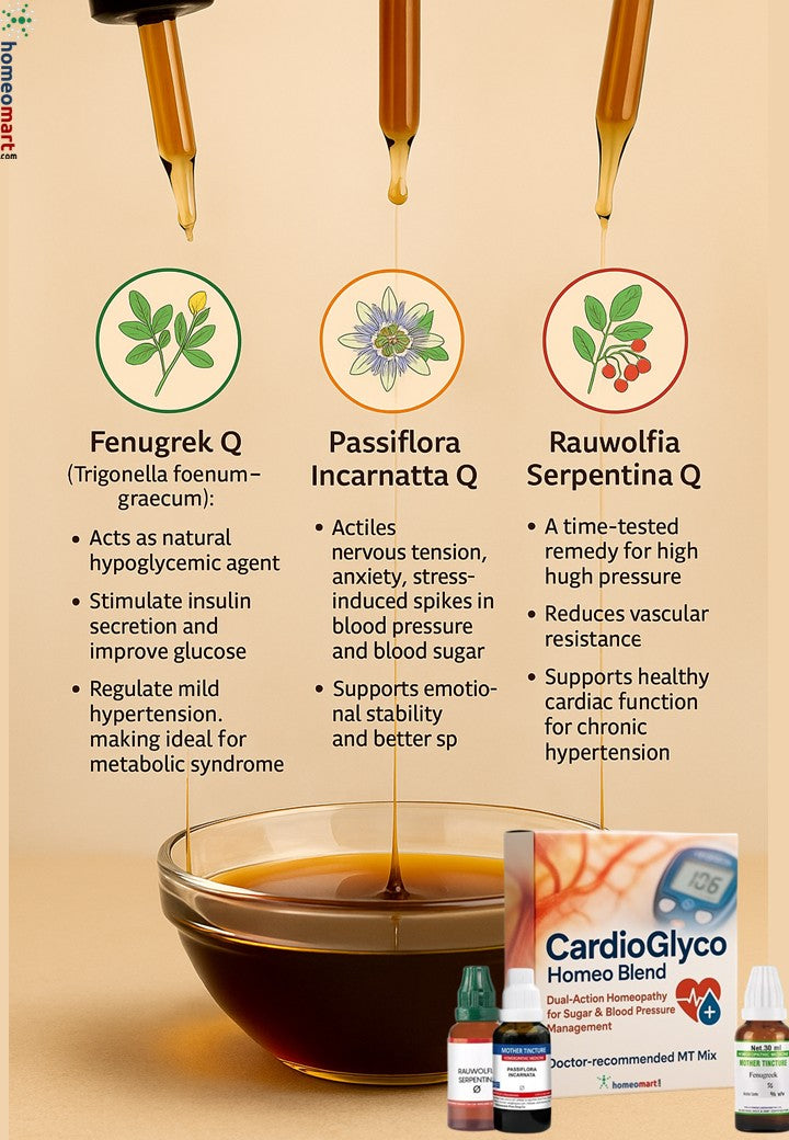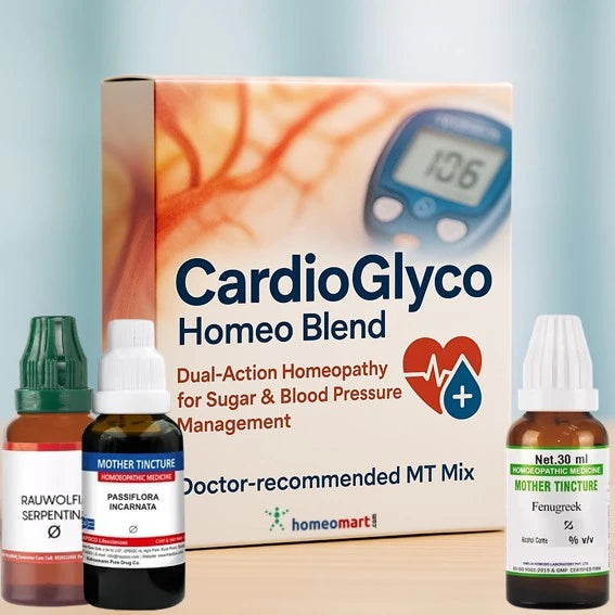 CardioGlyco Homeo Blend is a doctor-recommended combination of powerful homeopathic mother tinctures that supports the dual regulation of high blood pressure and elevated blood sugar. Designed for holistic wellness, this blend brings together three clinically effective remedies with proven benefits, as highlighted by an experienced homeopath in her YouTube video titled "शुगर और बीपी दोनों के लिए एक होमियोपैथी दवा | High BP and sugar homeopathy medicines".