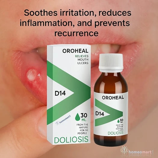 Doliosis D14 Oroheal is designed to target the root causes of mouth ulcers, also known as canker sores. These small, painful lesions develop inside the mouth or at the base of the gums, often causing irritation, pain, and difficulty eating. The proprietary blend of homeopathic ingredients works together to relieve symptoms and promote healing.
