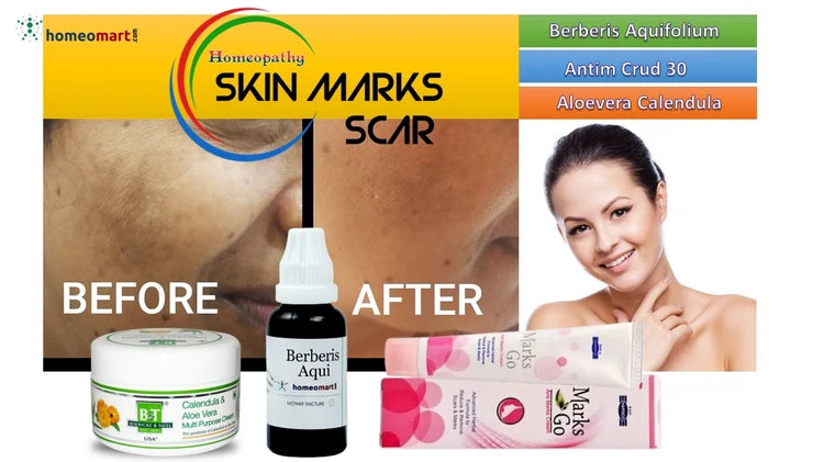 Berberis Aquifolium Q (Internal): This remedy is primarily recommended for treating pigmented acne scars. Berberis Aquifolium clears skin pores, tones the skin, decreases pigmentation of scars, and cleanses the complexion. It also works as a blood purifier and reduces incidences of acne.