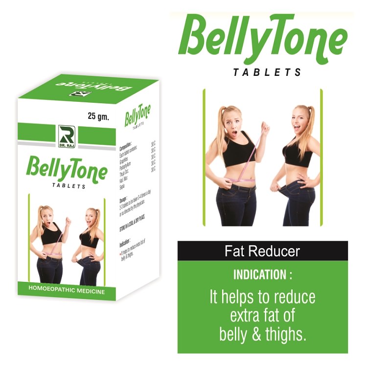 Dr. Raj Bellytone Tablets employ a homeopathic trituration formulation composed of five herbal ingredients specifically selected to target excess fat in the belly and thigh areas. This blend offers a natural approach to weight management without relying on conventional diet and exercise alone.