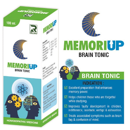 Dr. Raj Memoriup Brain Tonic is a powerful homeopathic preparation designed to boost memory, sharpen focus, and enhance cognitive abilities. Formulated with the natural goodness of Brahmi, Ashwagandha, and Aralia Racemosa, this brain tonic is perfect for children struggling with retention and focus, as well as adults experiencing forgetfulness due to stress or workload. It’s a safe and effective way to strengthen brain function and support better academic and professional performance.