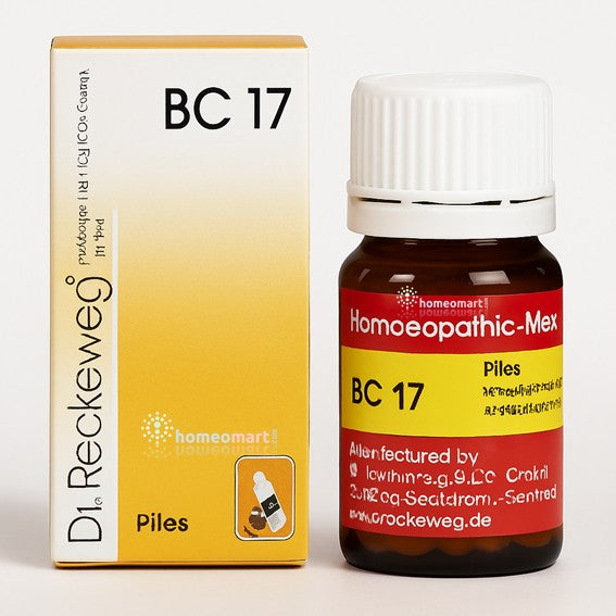 Reckeweg Biochemic Combination Tablets BC 17 are a trusted homeopathic remedy designed to address piles, including bleeding hemorrhoids, fissures, and associated backache. This biochemic combination supports the body’s natural healing mechanisms, promoting relief from discomfort and aiding in tissue repair.