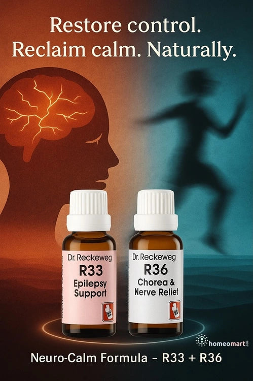 The combination of Dr. Reckeweg R33 and R36 offers a powerful homeopathic approach for managing epilepsy with chorea (St. Vitus' Dance)—a condition characterized by seizures along with involuntary, jerky movements.