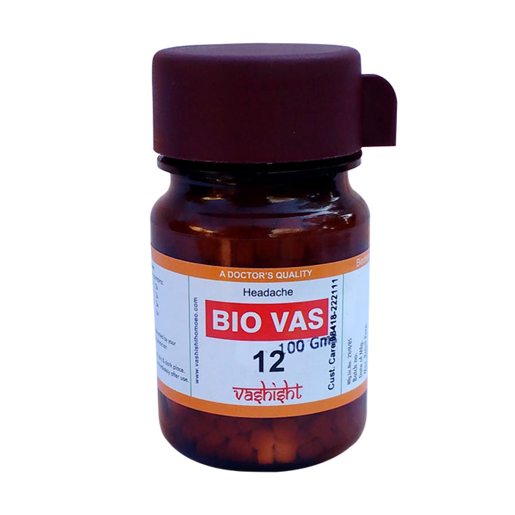 Dr.Vashisht Biocombination Bio Vas 12 is indicated for Headache due to sun heat, over-exertion, headache of students, vertigo, throbbing headache, nervous headache as a consequence to worries, sleeplessness and sluggish liver functions.