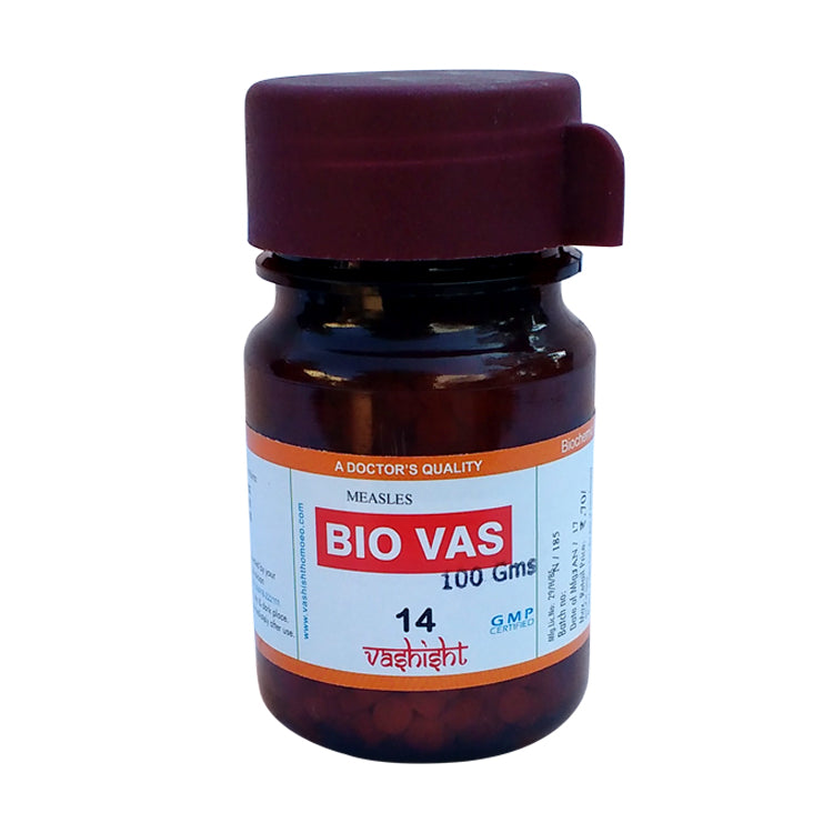 Dr.Vashisht Biocombination Bio Vas 14 is indicated for sneezing and thin discharge from nose, eyes watery, throbbing headache, cough and fever. Effective in all stages of measles.