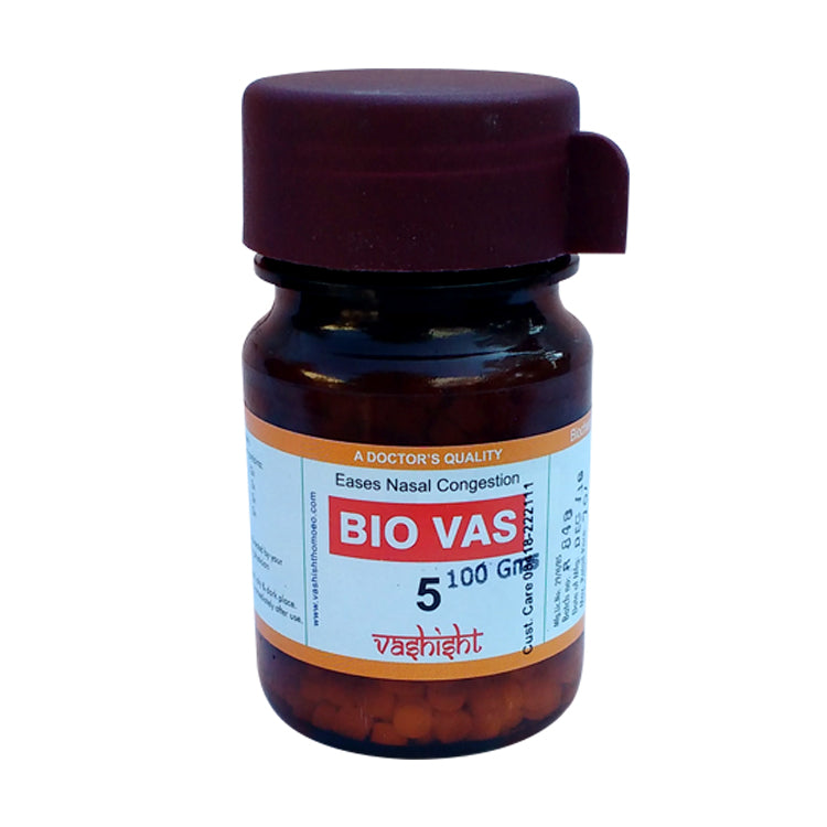 Dr.Vashisht Biocombination Bio Vas 5 is indicated for Inflammatory, febrile catarrhal condition, coryza with dull headache, sneezing, watery discharge. White coating on tongue.