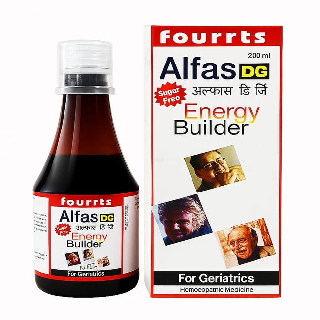 Recharge your energy and restore vitality with Fourrts Alfas DG Syrup – a sugar-free homeopathic tonic formulated to fight fatigue, build stamina, and enhance immunity. Ideal for diabetics, seniors, and individuals recovering from stress or illness, this syrup supports both physical and mental health with a blend of potent natural ingredients.