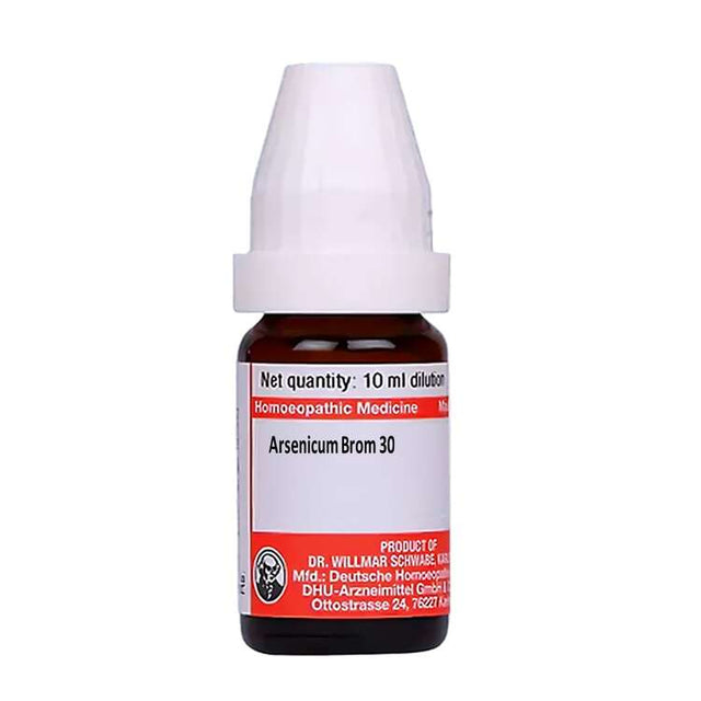 German Arsenicum Bromatum Homeopathy Dilutions 6C, 30C, 200C, 1M, 10M - Schwabe (WSG) / 10ml 30C is backordered and will ship as soon as it is back in stock.