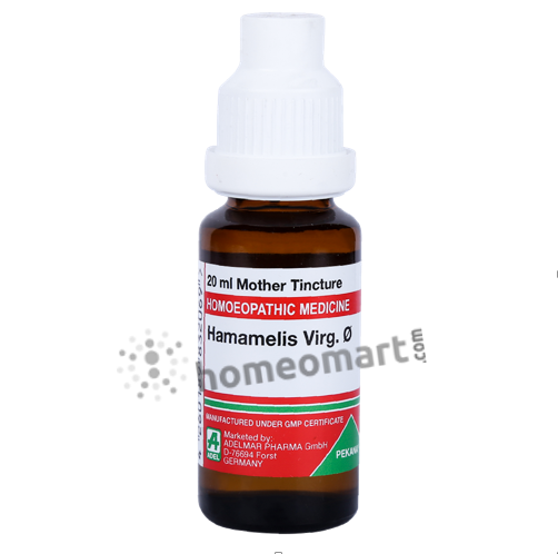 Hamamelis virginica MT is very useful in cases of venous congestion, hemorrhages, varicose veins, and hemorrhoids, with bruised soreness of affected parts, open, painful wounds, with weakness from loss of blood. It is an astringent, anti-inflammatory, and stops external and internal bleeding. A tannin ‘hamamelitannin’ present in this drug, exhibits an activity of inhibiting colonic cancer growth.