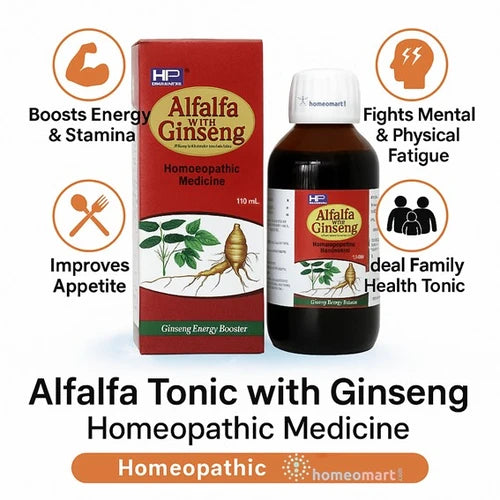 Hahnemann Pharma Alfalfa Tonic with Ginseng is a powerful homeopathic health supplement designed to combat general weakness, fatigue, stress, and poor appetite. Enriched with Ginseng, Alfalfa, and other restorative ingredients, it acts as a complete family tonic that revitalizes energy levels, supports mental well-being, and promotes full-body nourishment.