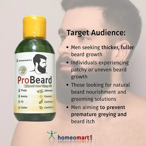 - ProBeard gives a man a stronger and fuller beard. It stimulates ideal beard growth by providing nutrients from 7 herbal sources. The mix of oils penetrates the hair well, coats the hair and moisturizes the skin