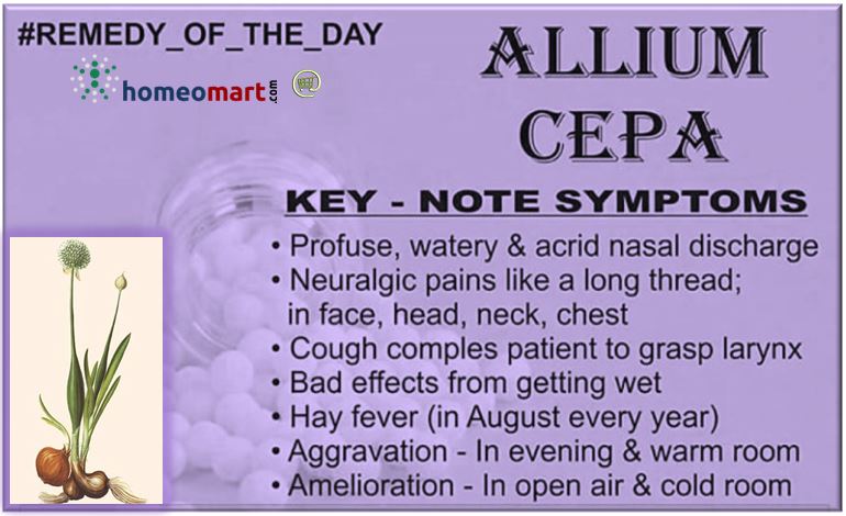 Allium cepa is suited for individuals experiencing acute upper respiratory symptoms, especially those with profuse watery nasal discharge that irritates the upper lip, burning and watery eyes, sneezing, and tickling cough.